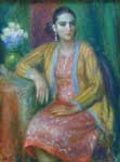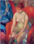Η Λουίζα σε ροζ φόρεμα, Δεσποινίς Όλγα Ντι , Γυμνή τραβώντας τις κάλτσες της,