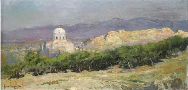 Β. Μποκατσιάμπης, Άποψη της εκκλησίας του Αγίου Νικολάου της Αθήνας, 1911. Ελαιογραφία σε καμβά, 28 εκ. x 58 εκ. Ιδιωτική συλλογή. Ο Βικέντιος Μποκατσιάμπης (Ποταμός Κέρκυρας, 1856 – Αθήνα, 1932) ήταν έλληνας ζωγράφος. Από γονείς γαλλικής καταγωγής, σπούδασε ζωγραφική στην Μασσαλία, στην Φλωρεντία και στην Ακαδημία του Αγίου Λουκά (ιταλ., Accademia di San Luca) της Ρώμης, όπου και παρέμεινε επί δεκαπέντε χρόνια. Το 1895 επέστρεψε στην Κέρκυρα, όπου ίδρυσε σχολή ζωγραφικής. Το 1900 διορίσθηκε καθηγητής της κοσμηματογραφίας στο Σχολείον των Τεχνών (την μετέπειτα Ανωτάτη Σχολή Καλών Τεχνών) διαδεχόμενος τον Βικέντιο Λάντσα και παρέμεινε στην θέση αυτή μέχρι το 1928, οπότε αποχώρησε λόγω ηλικίας. Παρότι άφησε πολλές ελαιογραφίες, εντούτοις η τοπιογραφία με υδατόχρωμα ήταν η κατεξοχήν ειδικότητά του. Από τη ελληνική Βικιπαίδεια http://el.wikipedia.org . Όλα τα κείμενα είναι διαθέσιμα υπό την GNU Free Documentation License |