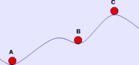 Καταστάσεις ευσταθούς ισορροπίας (Α - ολικό ελάχιστο, Β - τοπικό ελάχιστο) και ασταθούς ισορροπίας (C).